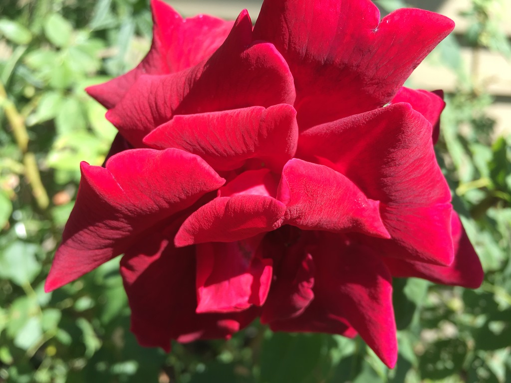 All summer my roses have continued to bloom, blessing us with a fresh crimson bouquet every couple of weeks though I never cease to be amazed by them. Each and every velvet petal seems a unique and masterful work of art.