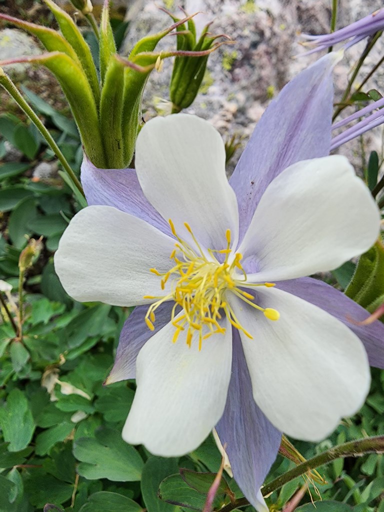 The Colorado Blue Columbine is fairly native to the Rocky Mountains which is likely why it was long ago named the state flower. Although we were visiting in late summer, well past prime time for spring wildflowers, we were still blessed to catch a couple of these along our way.