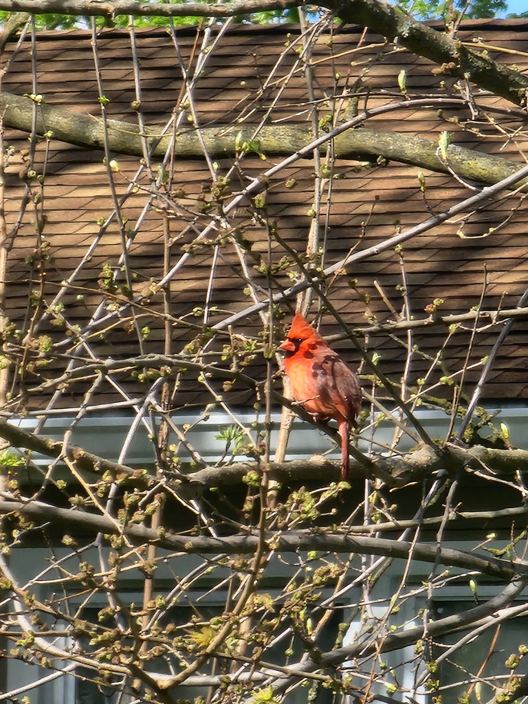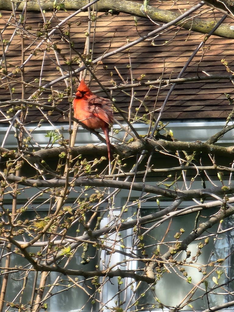 My husband and I have been on a mission this spring to befriend the neighborhood cardinals and have taken great care to keep our backyard feeder fully stocked with birdseed. Ever since I first came to Indiana I have savored each and every flash of scarlet wings that happens across my path but it wasn’t until this year that we took the time to investigate the Indiana state bird a bit. They are indeed named for their bright red feathers, reminiscent of the vestments worn by the cardinals of the Catholic Church. My husband and I also discovered that their ruby coloring is doubly appropriate as these are incredibly amorous birds who often mate for life. The male’s dazzling red coat is just one way in which he woos his beloved. Cardinal birds also grow up learning just a handful of birdsongs from their fathers which they must perfect in order to attract their one and only. Once they have, they become dedicated fathers themselves and providers for the nest, gathering food for their ladies and even taking turns sitting on the nest.