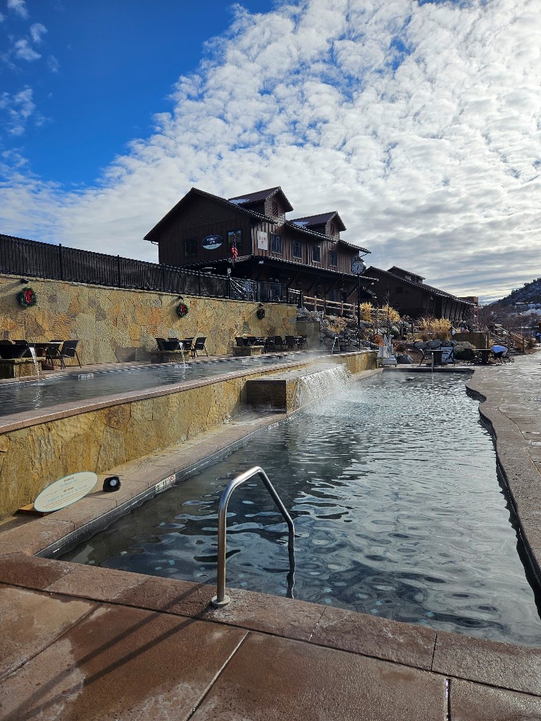 Although being singularly focused on our daughter’s care and well being has been an incredible blessing, I was recently reminded of the need for attention among my other relationships as well. In short, it was high time for a day out to reconnect with that rockstar hubby of mine. We are both thrilled to death that I get to be home with our daughter but even in this it is still occasionally necessary to take a break and enjoy a date with the wonderful man I married. My parents were only too happy to give us such an opportunity during our Christmas vacation to Colorado. They sent us out for the morning with two tickets to the Iron Mountain Hot Springs while they savored some long awaited bonding time with their new granddaughter. We spent several relaxing hours soaking in the mineral pools and drinking in views of the river and mountains beside us.